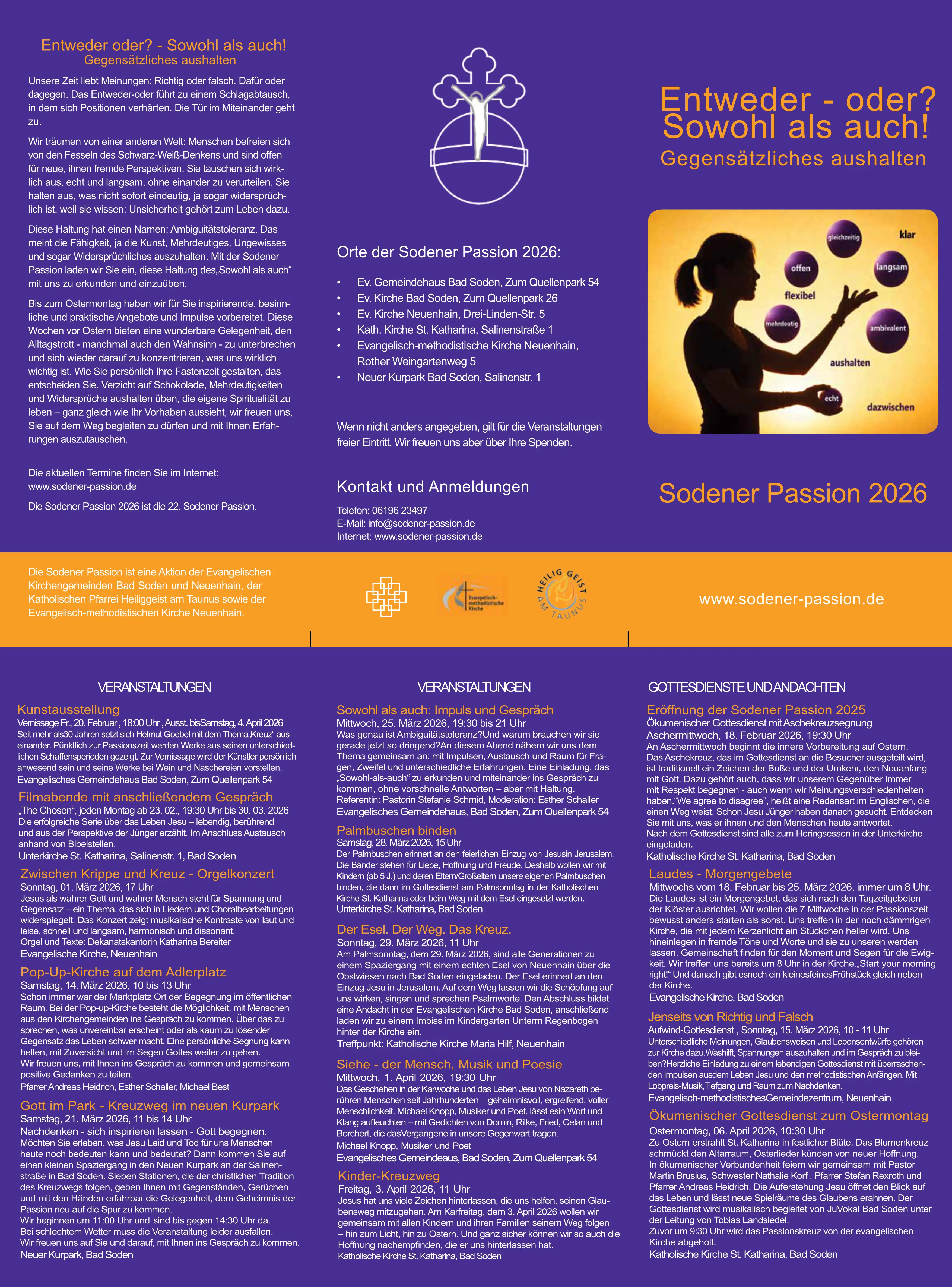 Die Laudes ist ein Morgengebet, das sich nach den Tagzeitgebeten der Klöster ausrichtet. Wir wollen die 7 Mittwoche in der Passionszeit bewusst anders starten als sonst. Uns treffen in der noch dämmrigen Kirche, die mit jedem Kerzenlicht ein Stückchen heller wird. Uns hineinlegen in fremde Töne und Worte und sie zu unseren werden lassen. Gemeinschaft finden für den Moment und Segen für die Ewigkeit. Wir treffen uns bereits um 8 Uhr in der Kirche. Start your morning right! Und danach gibt es noch ein kleines feines Frühstück direkt neben der Kirche. Wo: Evangelische Kirche, Bad Soden