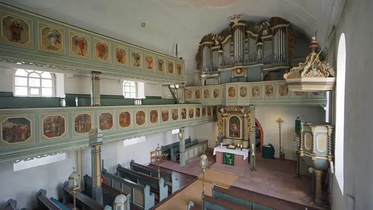 Eine ausführliche Erklärung zu den Bildern auf der Empore finden Sie
